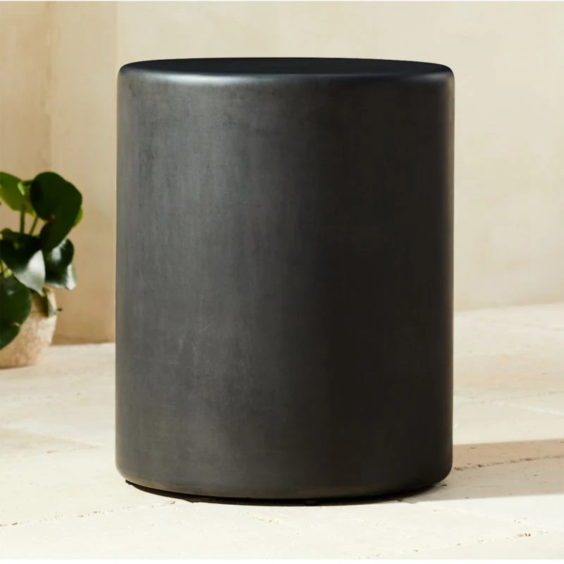 Beyond multitasking: dark grey concrete stool by Jennifer Fisher works indoors or out—and doubles as a side table, too. “These stools are great. When you want to sit, you stay put, but you can pick it up and move around the party when you want, too,” says Jennifer. CB2 exclusive.
