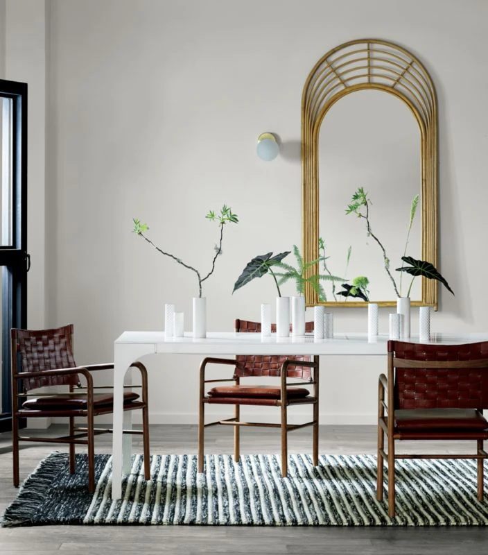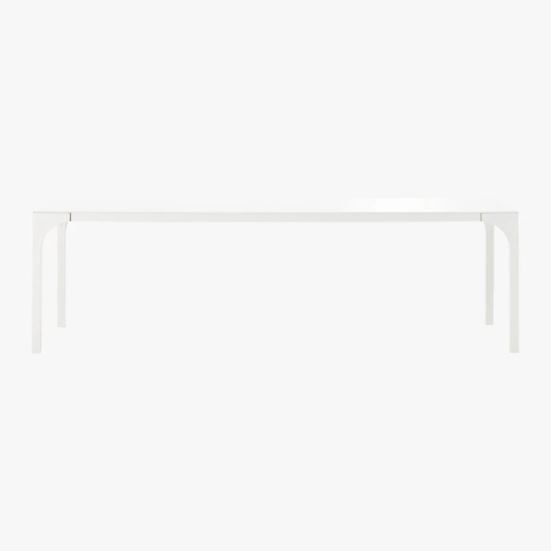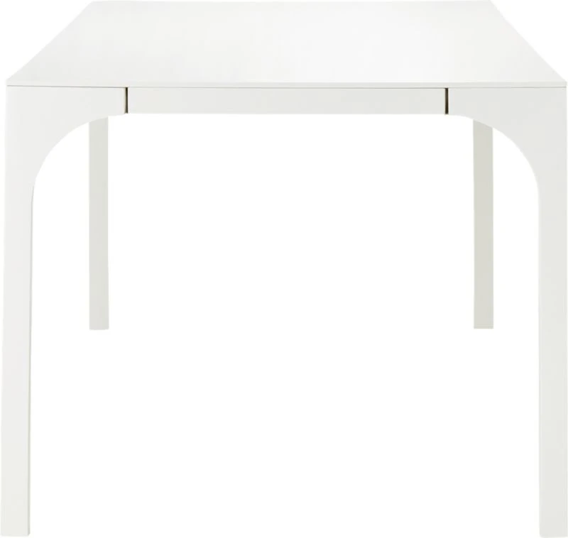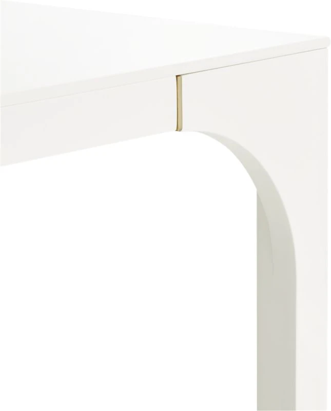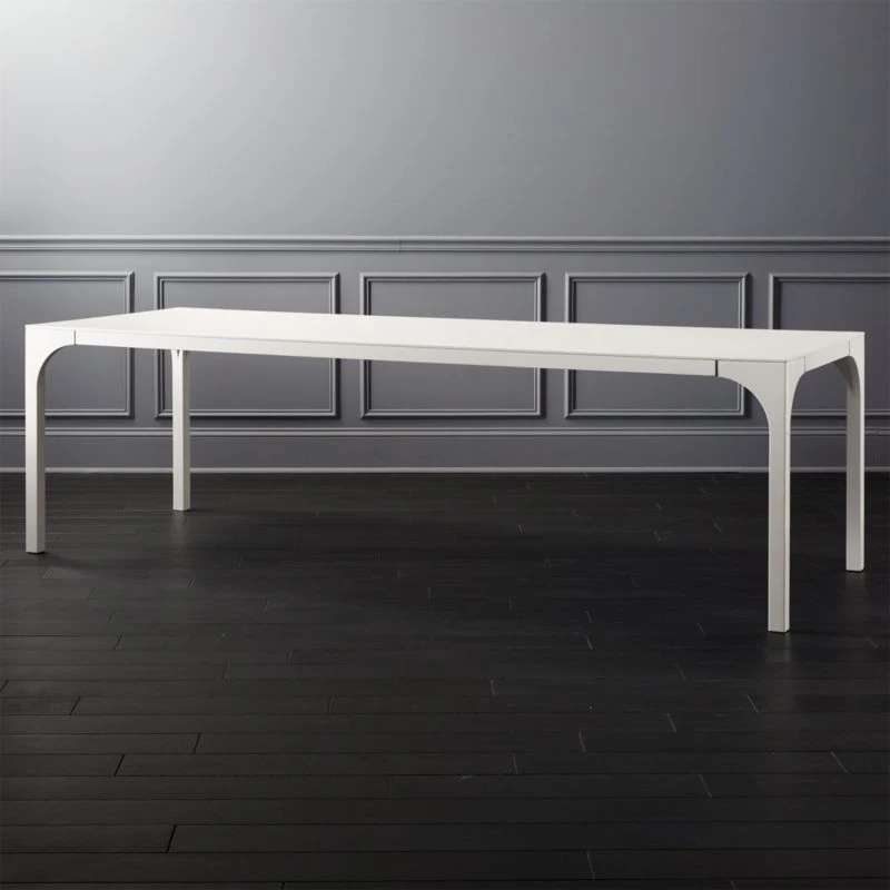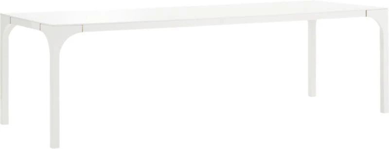 Ancient Roman aqueducts and high-speed trains are the ticket to this sleek lacquered dining table from the minds at Italy’s Euga Design Studio. Table flows continuous in hi-gloss, from smooth engineered wood top to solid rubberwood legs, and spotlights brass inlay detail. Fluid curve of each leg mirrors the sweeping arched structure of the aqueductsβan architectural foundation for a stretch of Eurail tracks. Large white dining table comfortably dines eight, but will accommodate ten. Learn about Euga Design Studio on our blog. CB2 exclusive.