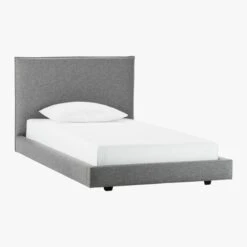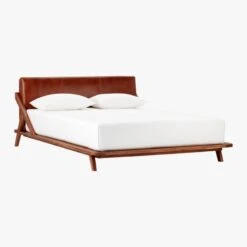 Drommen Acacia Wood Platform Queen Bed With Leather Headboard