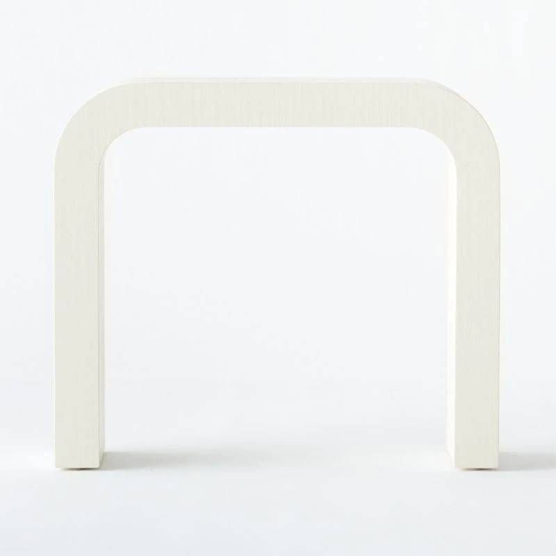Inspired by modern silhouettes and unique materials of the 1970s, VUUE’s design transforms a simple U-shape into a statement console table with extra-rich texture. Raffia wraps the piece, finished in hi-gloss ivory. Mixes effortlessly with any modern living situation. Learn more about VUUE on our blog. CB2 exclusive.