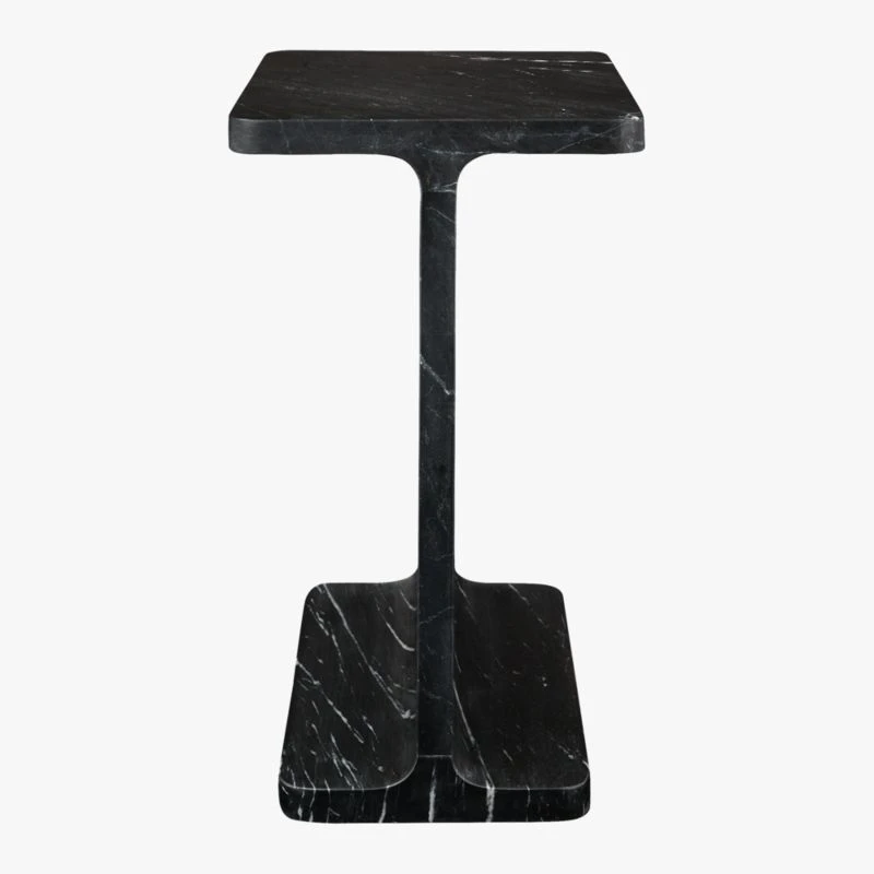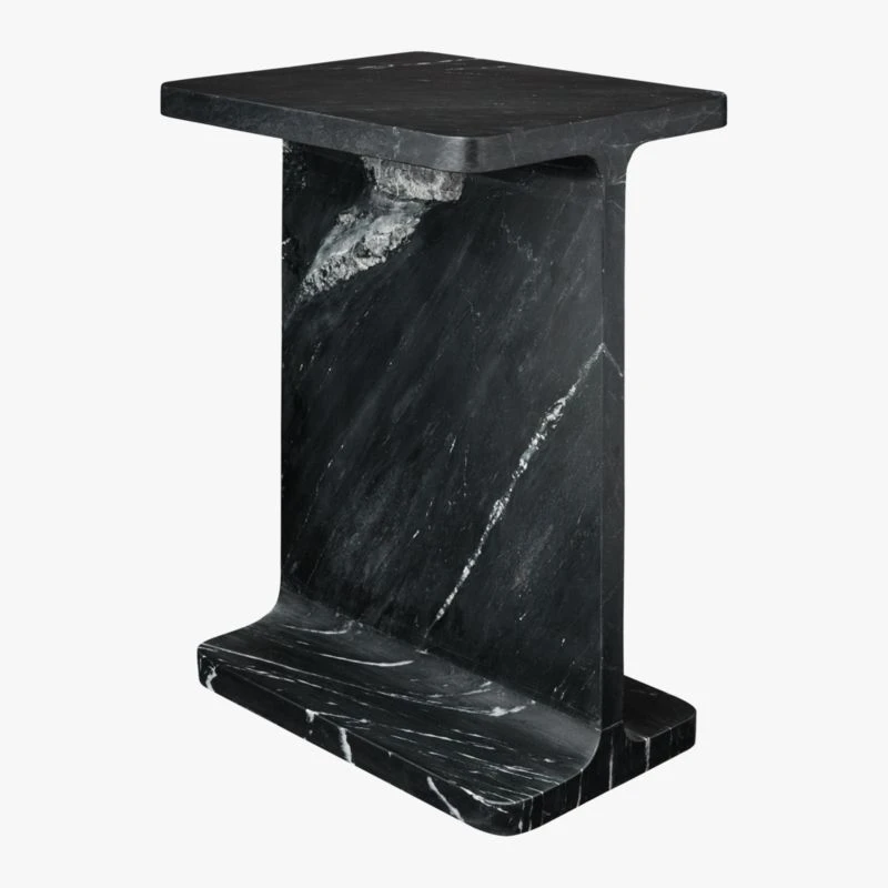 I Beam Black Marble Side Table. 15″Wx12″Dx20″H
