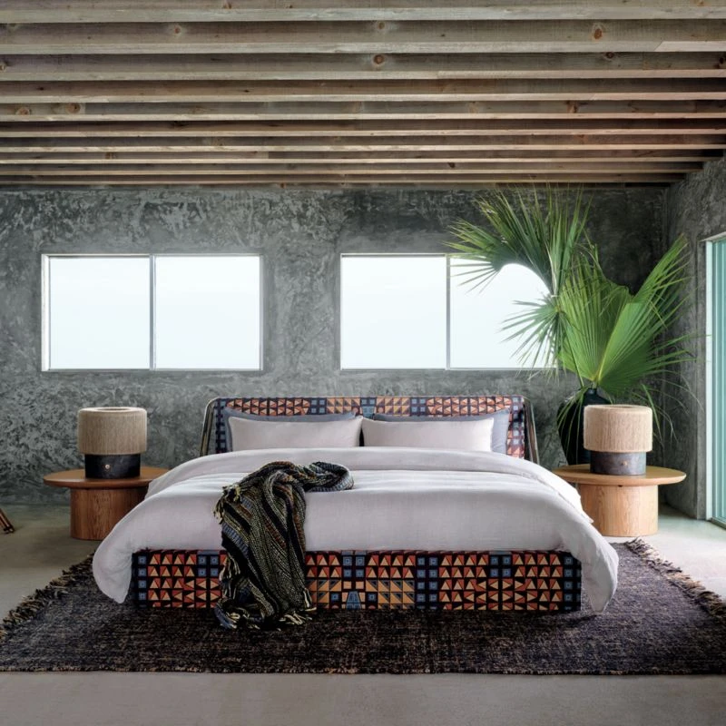 Inspired by African fabric patterns, Kravitz Design’s woven throw is a canvas for showcasing traditional motifs. Woven manually on handlooms using multi-sized fibers of unspun-wool, for a unique and varied texture. Handfeel is soft and lush; colors are rich and vibrant. Fringe detail adds a playful finish. CB2 exclusive.