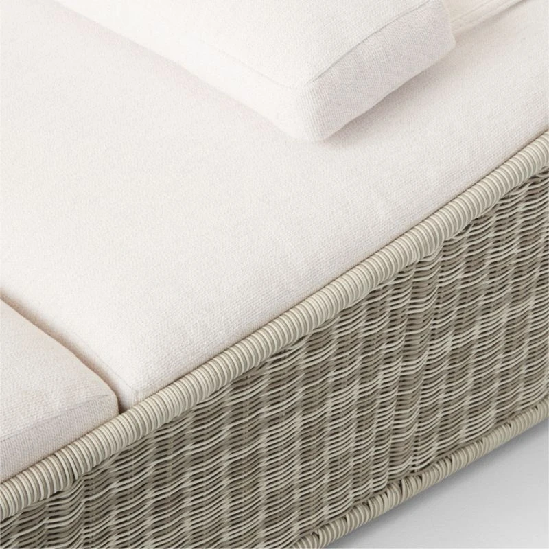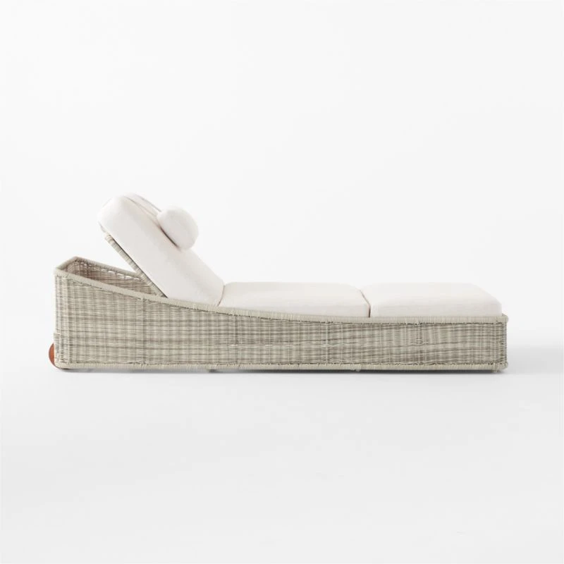 Nino Ivory Rattan Outdoor Chaise Lounge with Ivory Boucle Sunbrella® Cushions 35″Wx84″Dx19″H