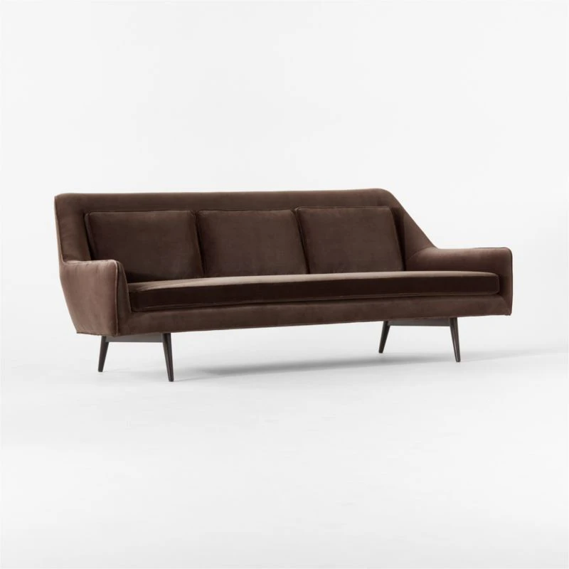 Iconic midcentury sofa design by Paul McCobb gets a luxe update in modern grey velvet. The frame and legs are also now FSC ®-certified wood, an eco-friendly detail for the 21st century. CB2 exclusive.