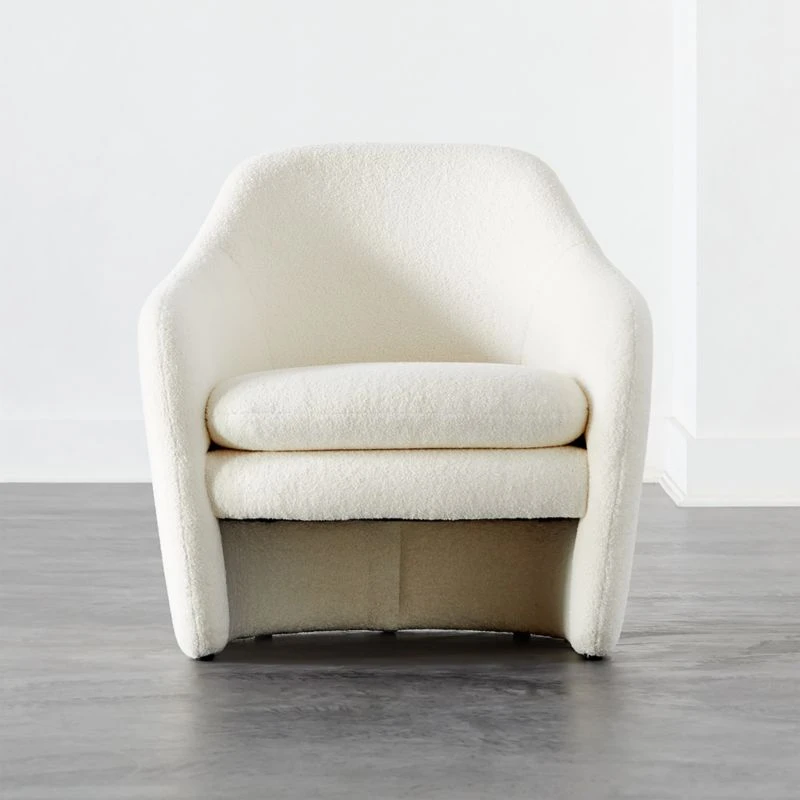 Luxe boucle hugs every curve of this vintage Italian-inspired chair by Balutto Associati. Soft and inviting, seat makes a gorgeous statement in the bedroom or living room. CB2 exclusive.