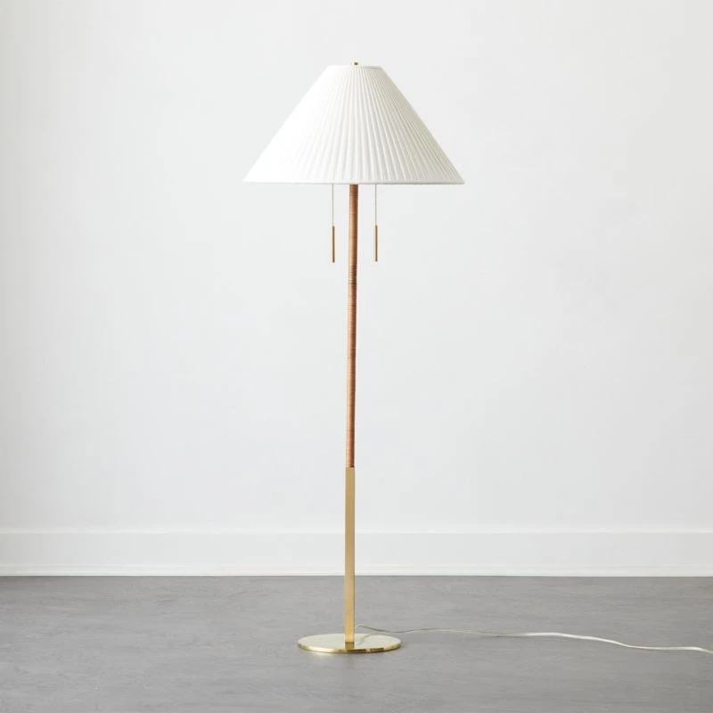 - Solid polished unlacquered brass base with natural cane wrap