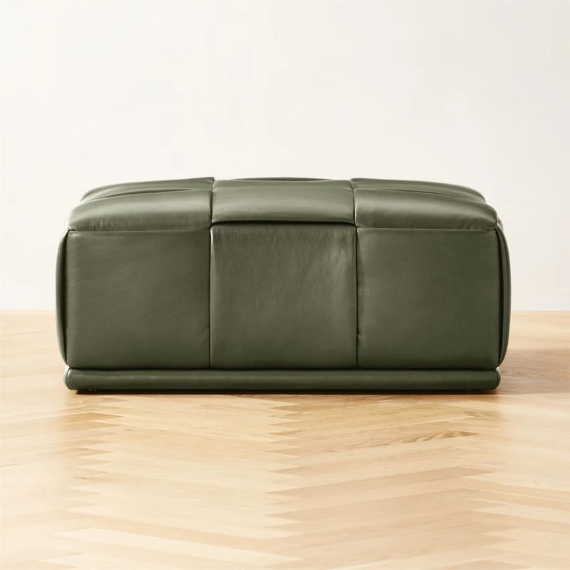 Pointe Green Leather Ottoman 38.5″Wx38.5″Dx16″H