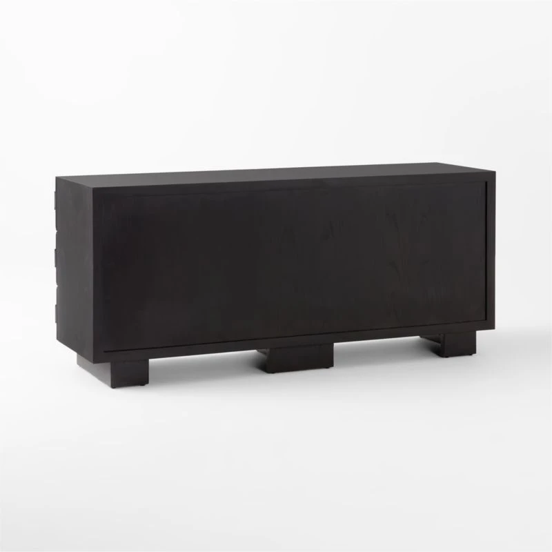 Spacious oak dresser by Lawson-Fenning accentuates the beauty of natural wood. Horizontal ribbons of white oak, certified sustainable by the Forest Stewardship Council ® and given an ebonized black finish, add dimension through naturally occurring whorls inherent to wood. Solid wood drawers have dovetail joint construction and soft-close glides; their wooden handles are incorporated into the drawer fronts for a streamlined look. CB2 exclusive.