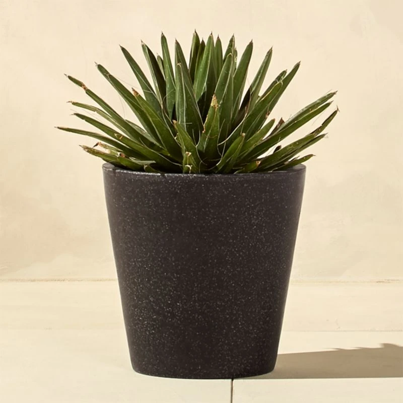 Modern faux-stone planter is handmade from an innovative polystone material that resembles natural stone—both in looks and durability. Modern conical shape and black finish accent any decor. We especially love them in multiples.
