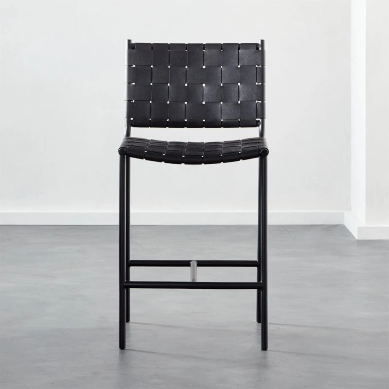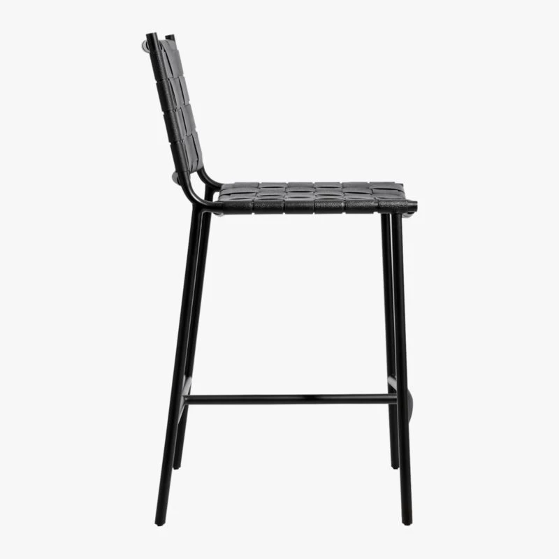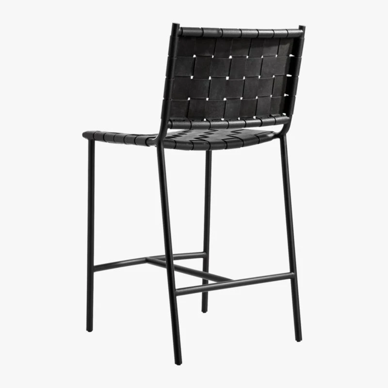 Laid-back design recalls classic midcentury style. Designed by Mermelada Estudio, the silhouette was fine-tuned and rich black leather was woven for the seat and back. Due to differences in all-natural leather, each stool will be unique. Learn about Mermelada Estudio on our blog. CB2 exclusive.